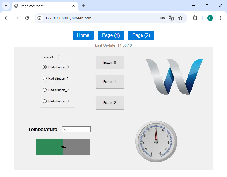 When a user enters a page, your SCADA design is displayed exactly as is in the web browser: