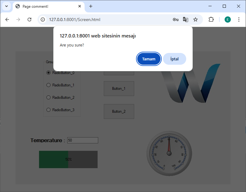 Security and user experience in web browsers differ from the desktop environment. Wise SCADA uses special dialog windows to prevent accidental operations.