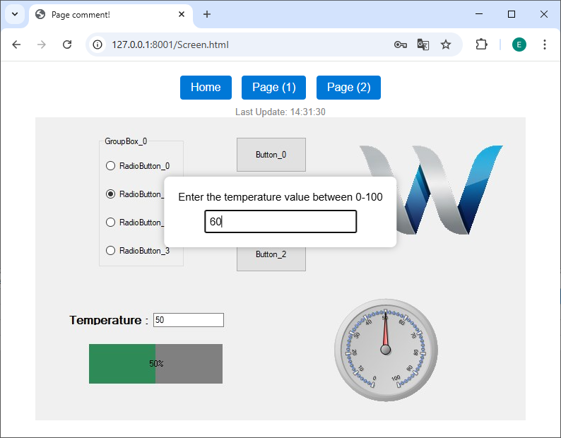 - Guidance: If you write a note such as “Enter the temperature value between (0-100)” in the Comment field of the object, this note appears in the title of the pop-up window. This feature is very useful for guiding the operator to enter the correct value.