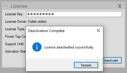 - Confirm the “License deactivated successfully” message.