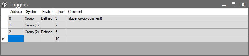 If desired, you can change this name from the Symbol column in the main Triggers window to give the group a meaningful identifier.