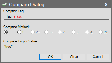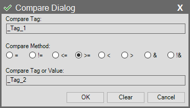 This dialog allows you to define a condition that compares a tag’s value with another tag or a constant value.