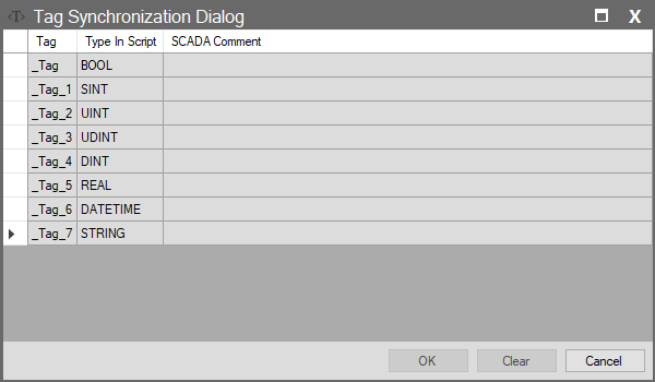 | SCADA Comment | Displays the description of the tag from the main database (Tags page). Provides reference to enhance code readability. |